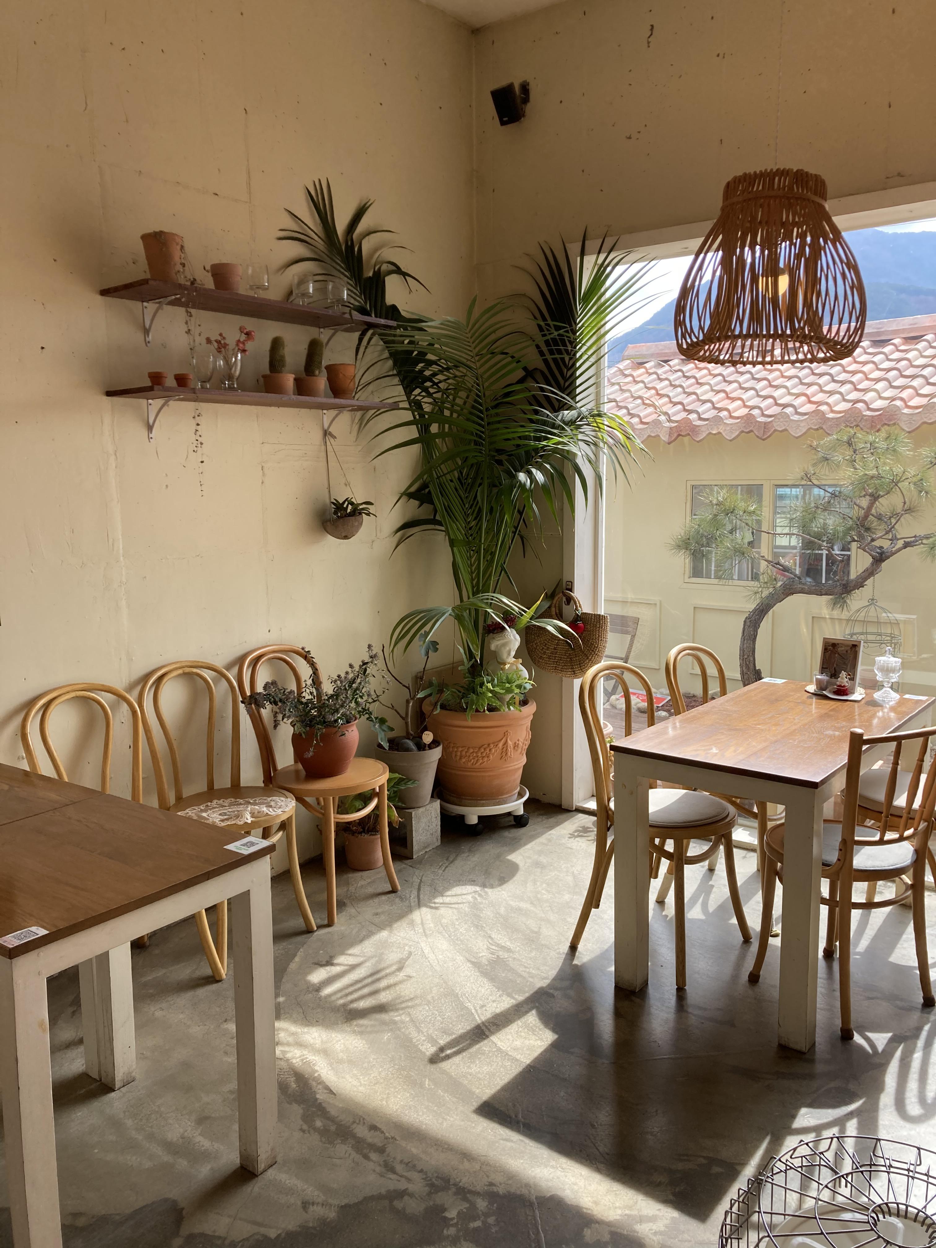 실내는 화이트+우드+초록식물 조합의 인테리어라 마음이 포근해져요.