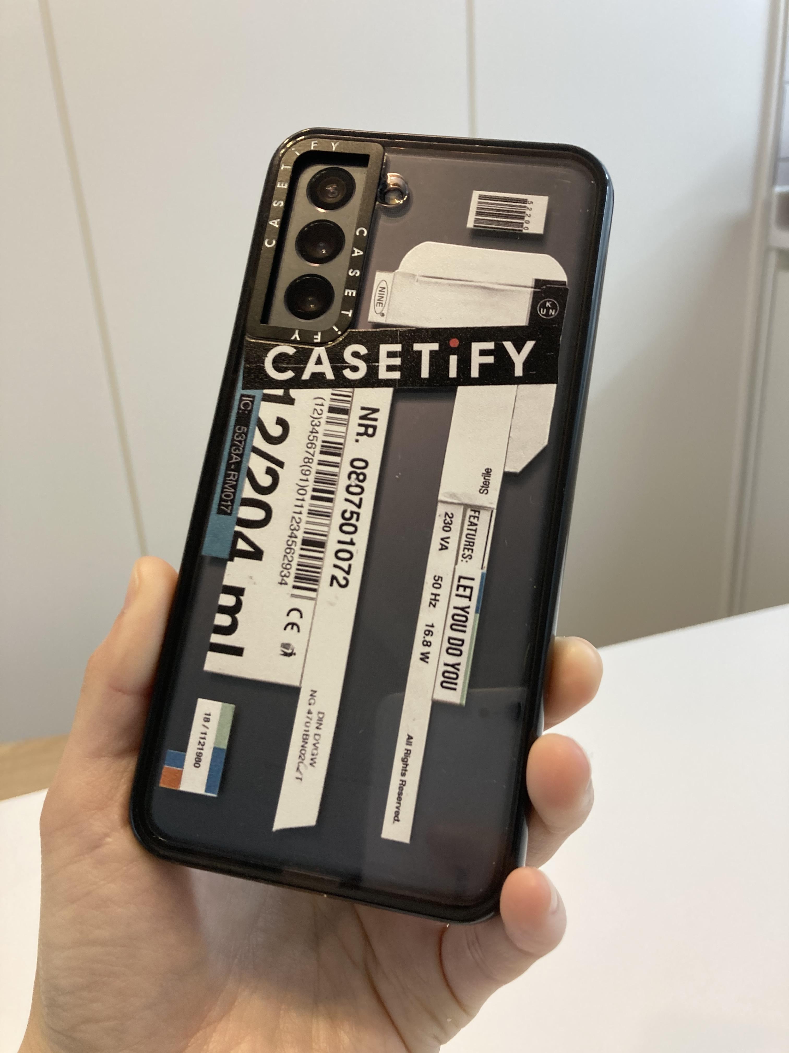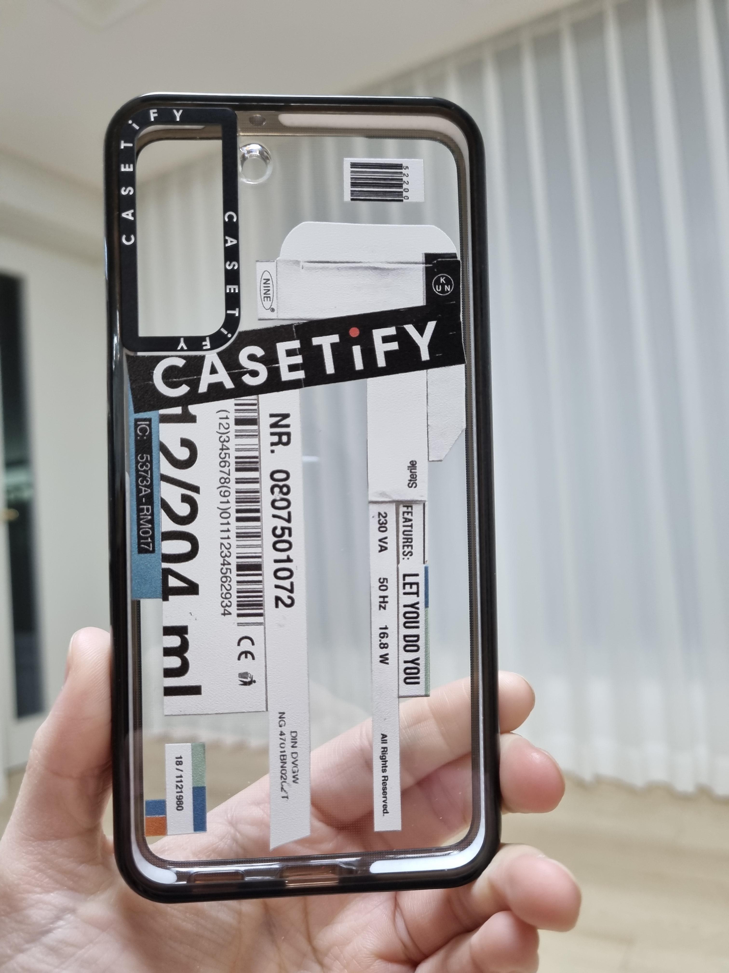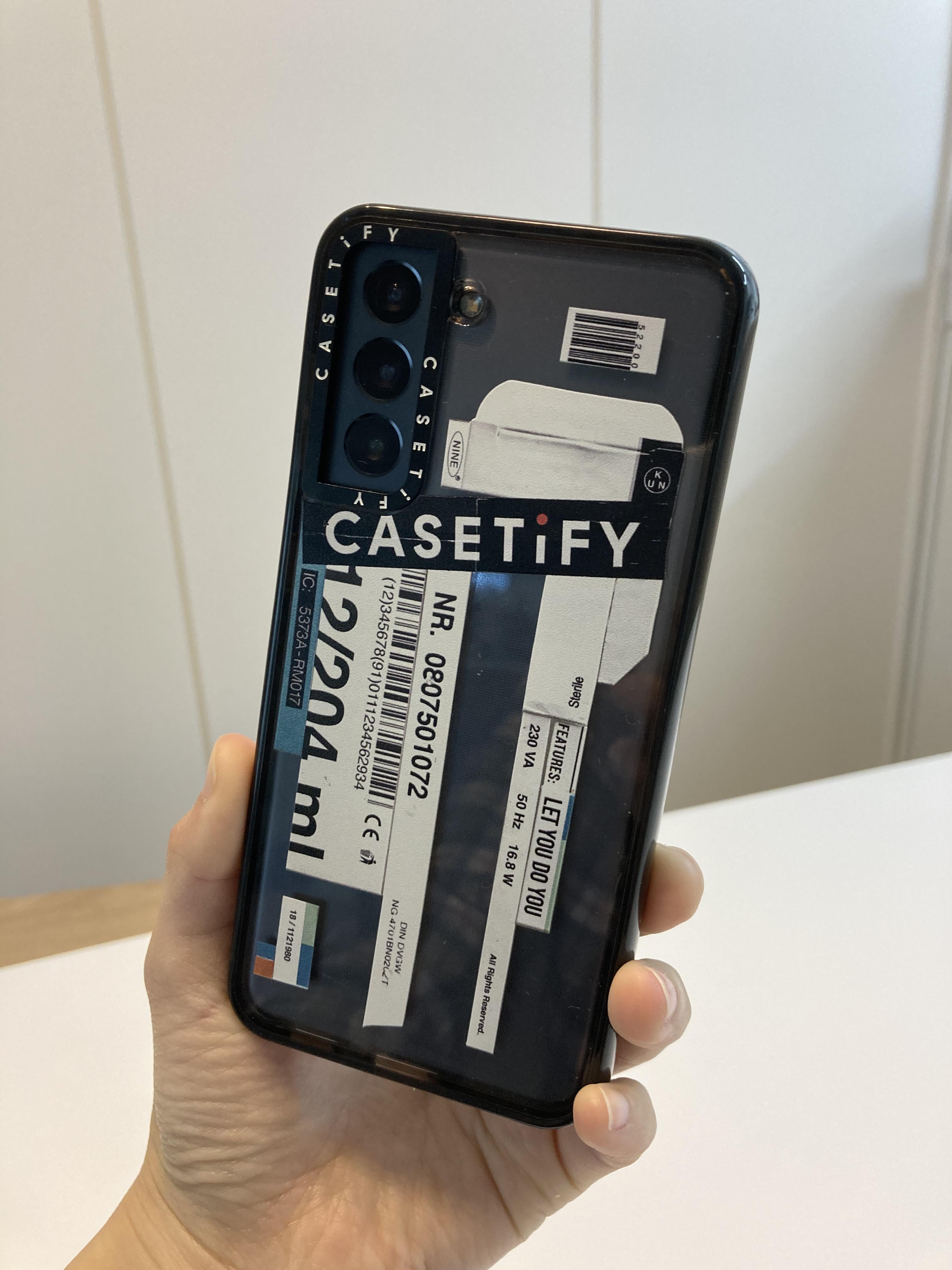 갤럭시21 그레이 휴대폰에 실착한 사진이에요.