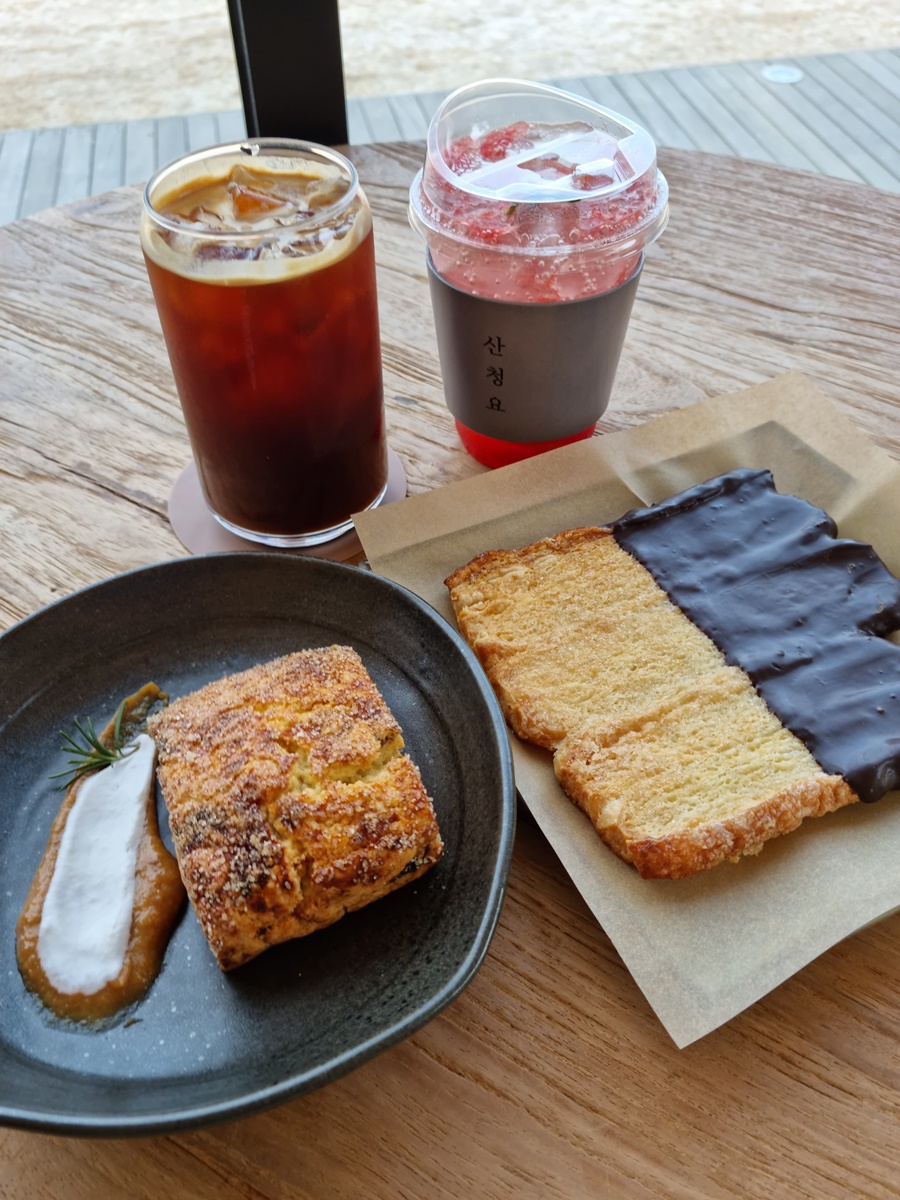 - 산청요: 베이커리 카페, 실내 매장은 크지 않으나 외부 조경이 잘 되어 있으며 굉장히 넓음, 날씨가 좋다면 외부에서