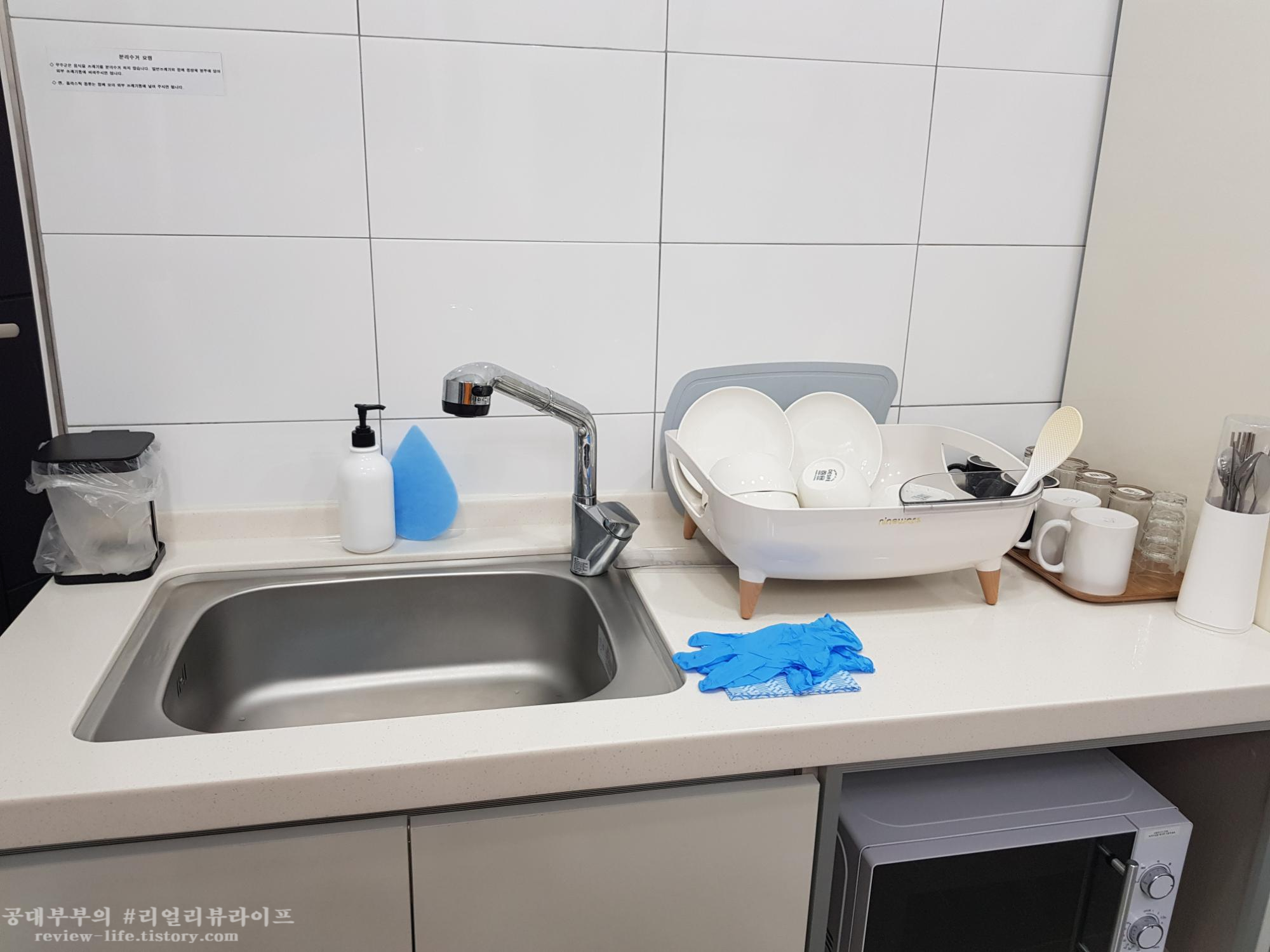 싱크대에 수세미 행주 장갑 모두 일회용으로 위생적인 느낌