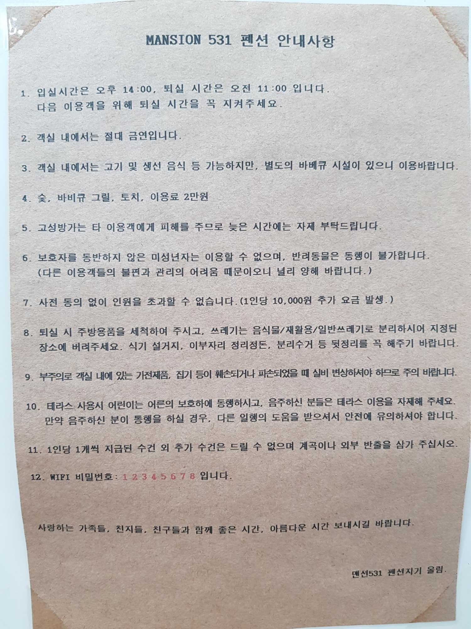 다른 펜션에서도 볼 수 있는 흔한 이용수칙