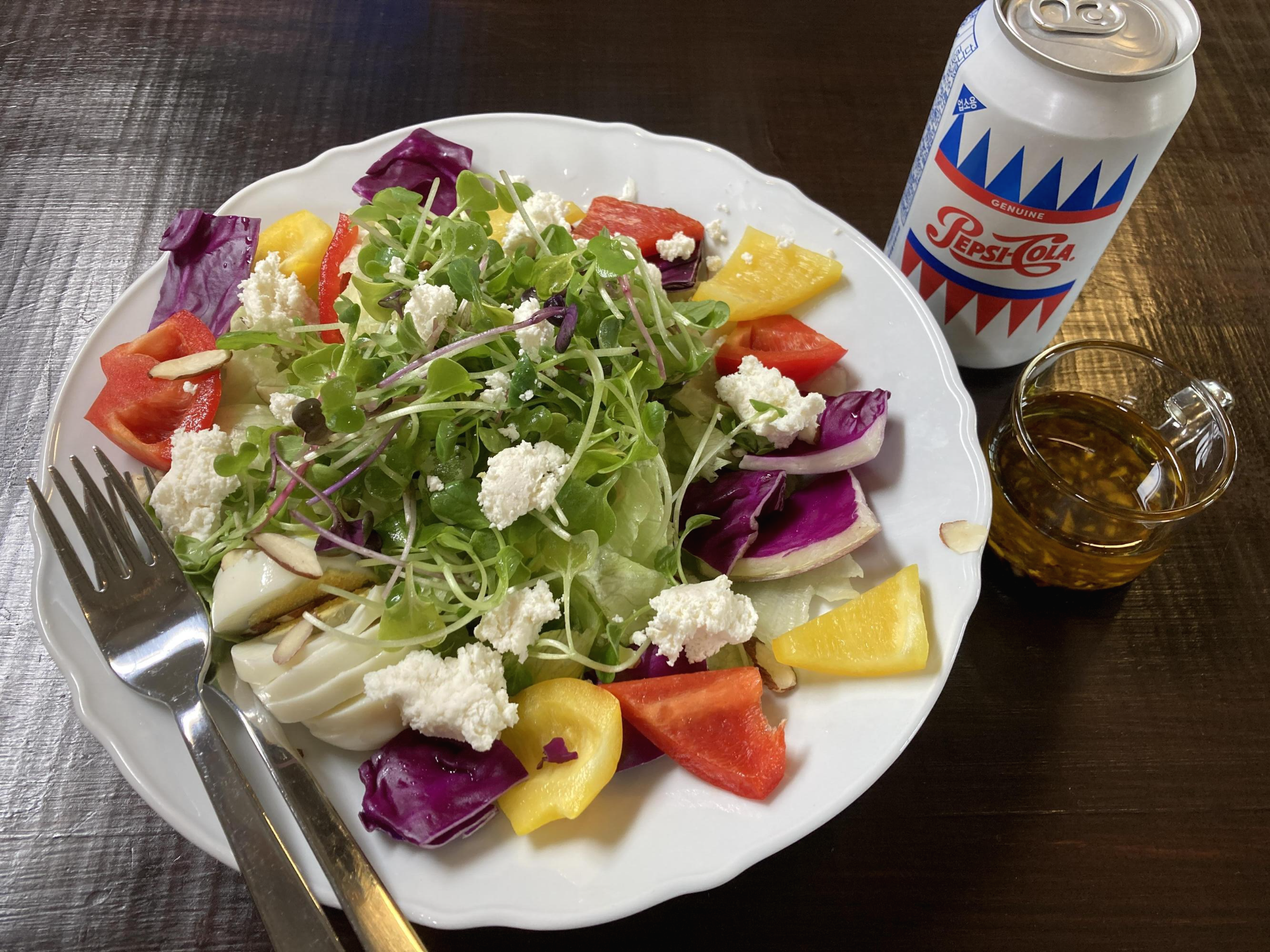 발사믹 드레싱이 나왔는데 올리브유가 너무 많이 들어있어서 나중에 샐러드 먹을 때 발사믹 맛이 잘 안 나고 오일 맛만 났어요.