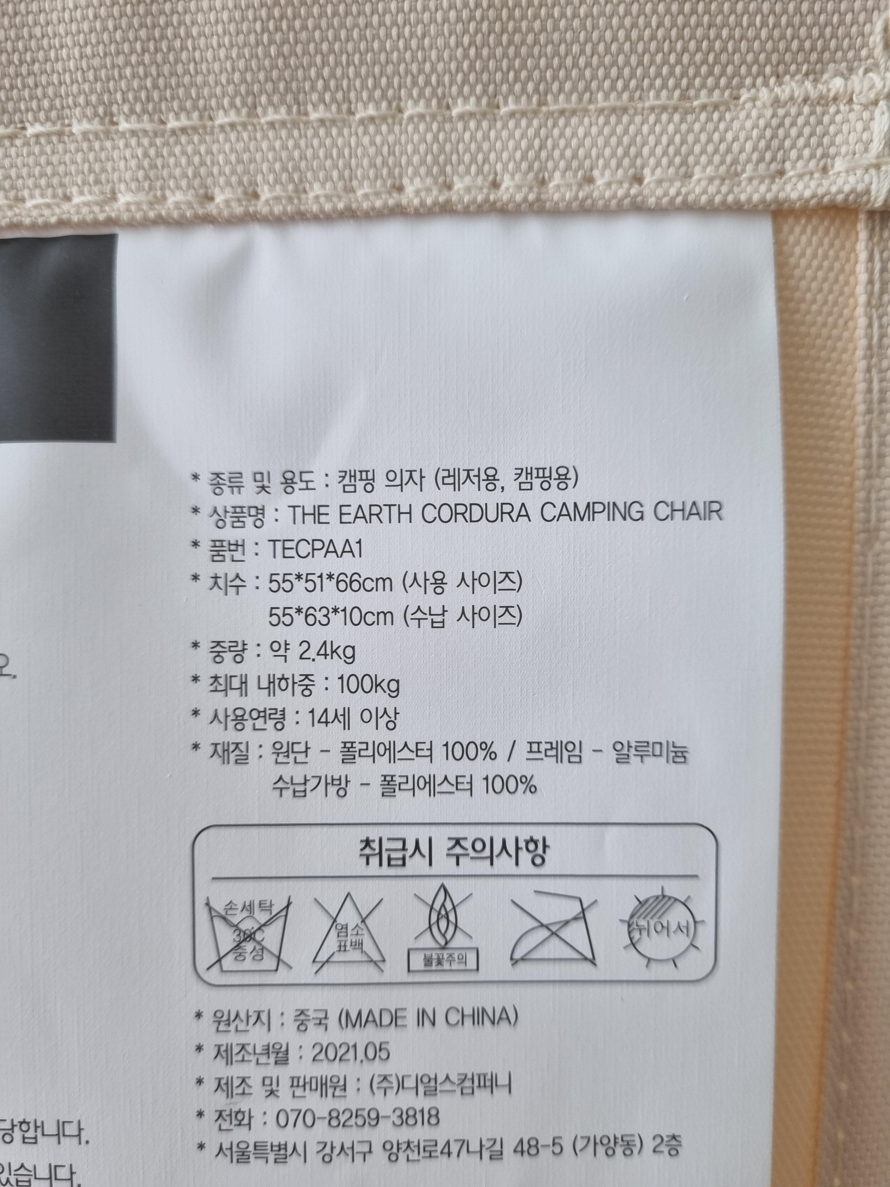 이 의자의 스펙은 보시다시피 내하중 100kg에 무게 2.4kg입니다.