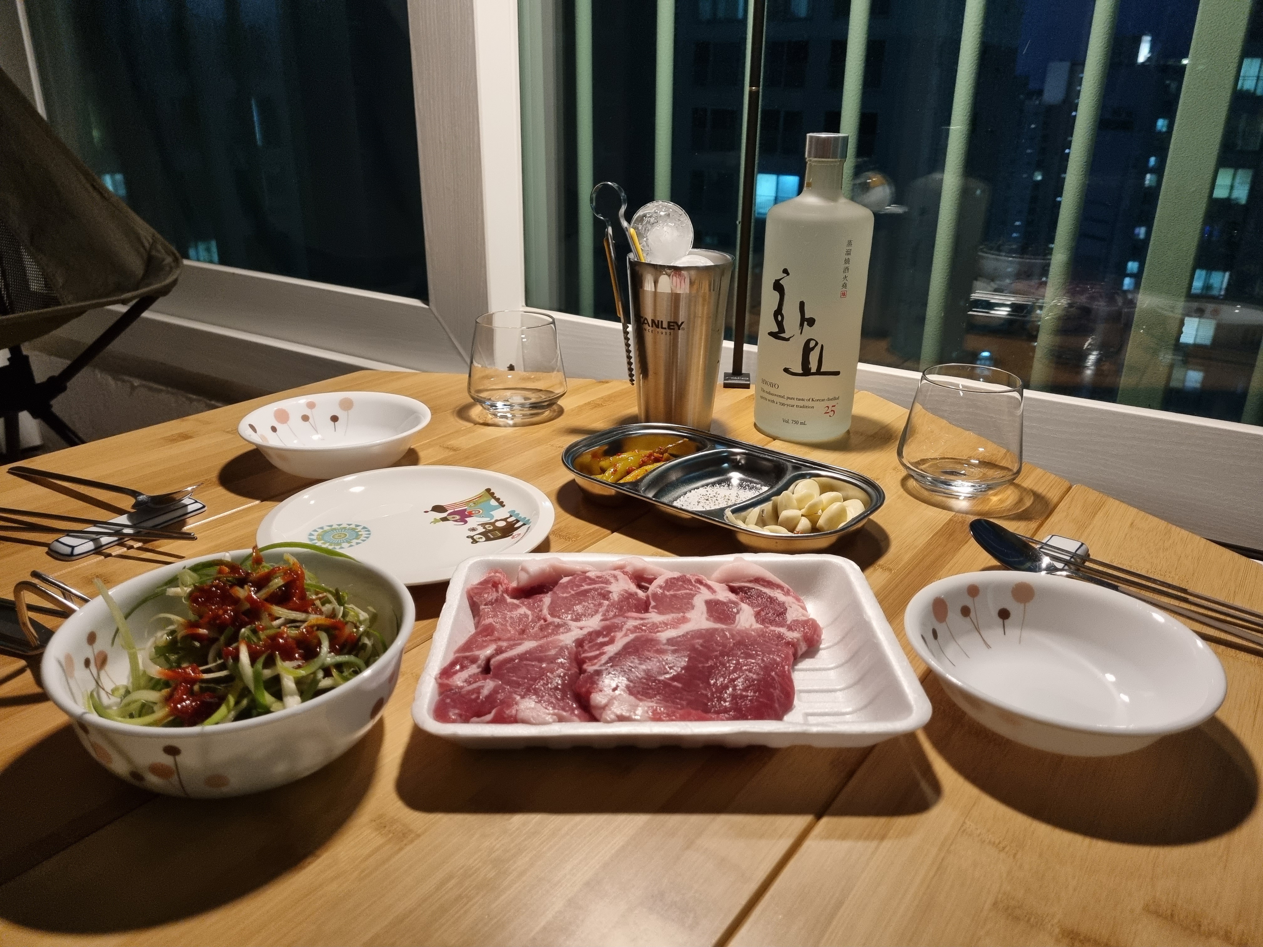 원래는 기존에 캠핑에 들고 다니던 의자와 테이블을 사용했었는데, 베란다에서 쓰다가