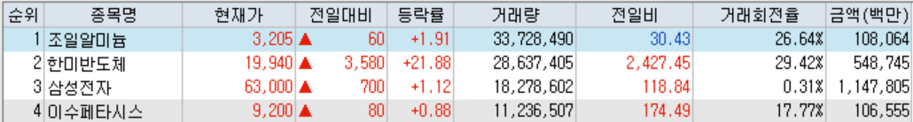 ● 코스피 천만주 : 3종목