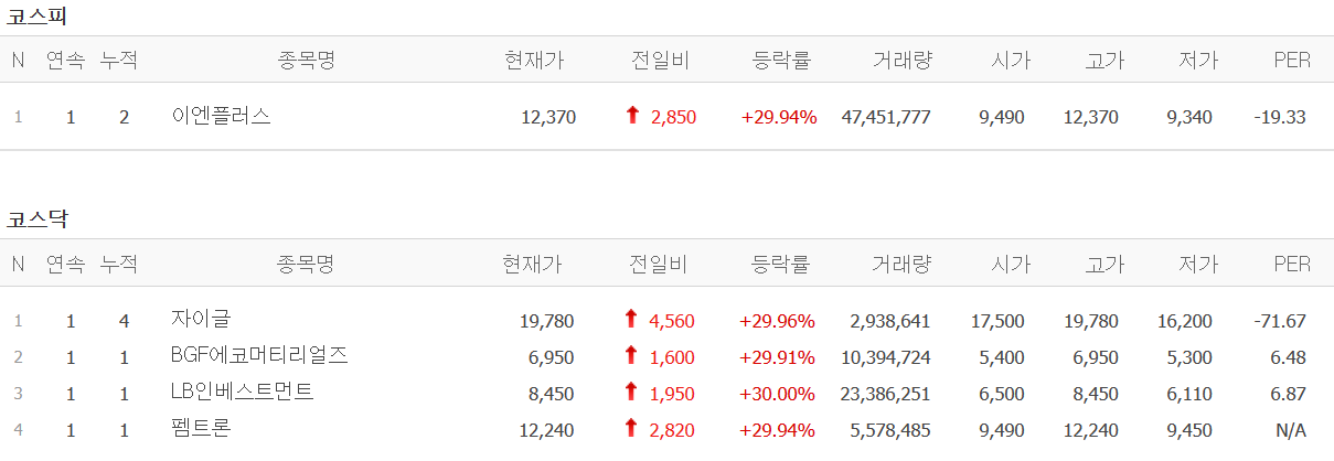 - LB인베스트먼트 : 신규상장 첫날 상한가.