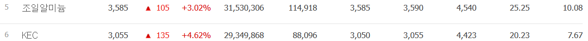- 조일알미늄 : #2차전지관련주로 양극박을 생산하는 국내 알루미늄 박 제조사에 양극박재를 납품하는 업체. 특별한 추가 호재나 공시 없음.