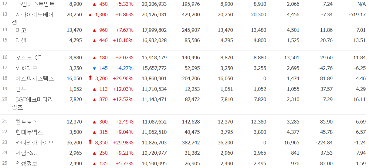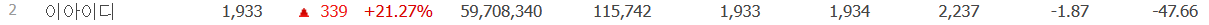 - LB인베스트먼트 : 신규 상장 둘째날로 어제 상한가 이후 금일 재상승. 특별한 호재 없음.