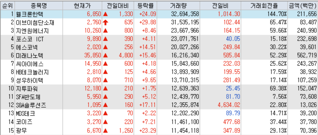 ● 코스닥 천만주 : 19종목