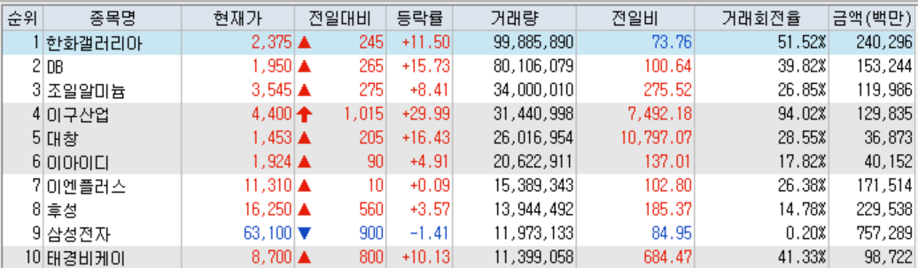 - 한화갤러리아우 : 특별한 호재나 공시 없음. 지난 금요일 한화솔루션에서 백화점 사업부인 갤러리아 부문의 인적분할 첫 상장으로 상한가.