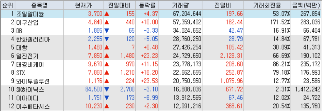 - 대창 : #구리관련주인데 일등주가 이구산업이라 둘째날에는 힘이 약한듯.
