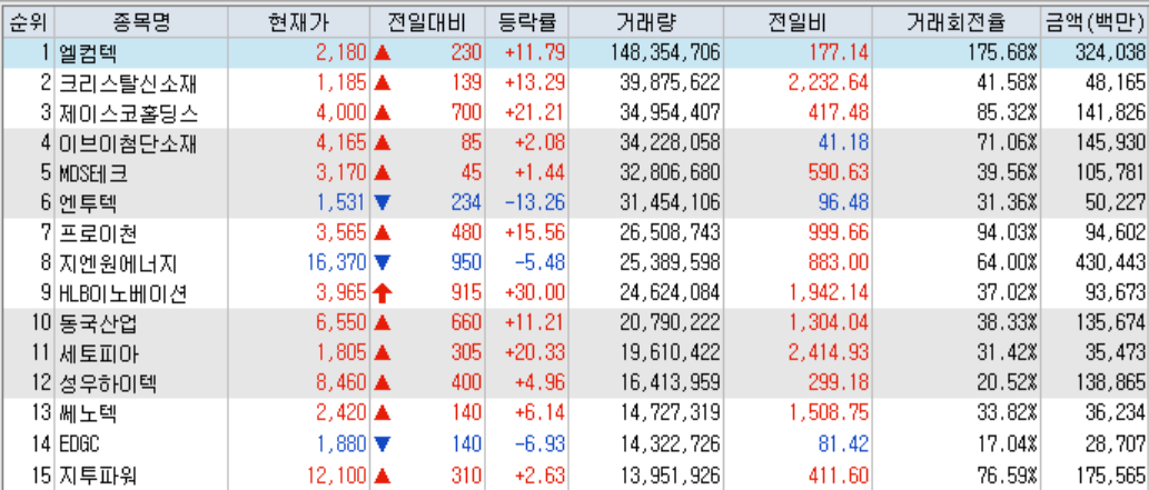 ● 코스닥 천만주 : 19종목