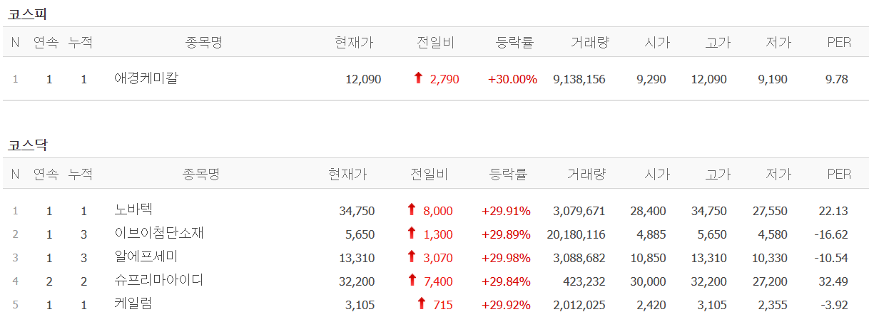 - 이브이첨단소재 : #리튬관련주 리튬 테마 상승 속 국내 기업에 수산화리튬 공급 완료 모멘텀 지속에 상한가