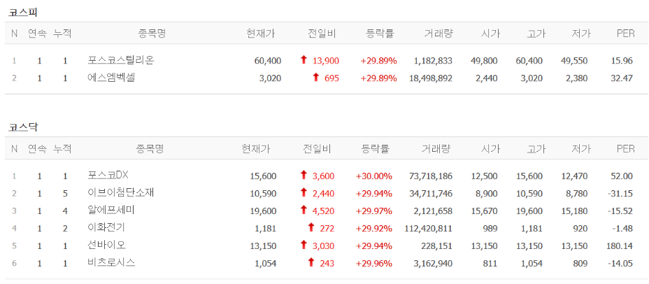 - 포스코DX : 상한가.