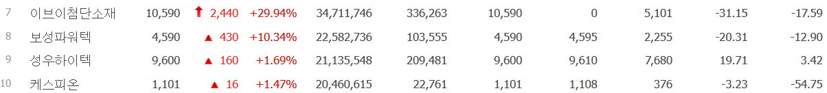 - 이브이첨단소재 : 상한가.