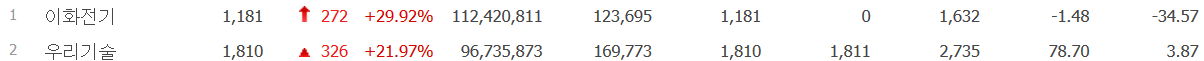 - 이화전기 : 상한가.