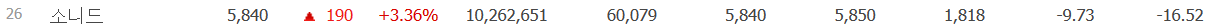 - 소니드 : 소니드, 삼성SDI 협력업체 2차전지 제조사 S사 인수(23.4.17 13:47) 소식 속 상승.