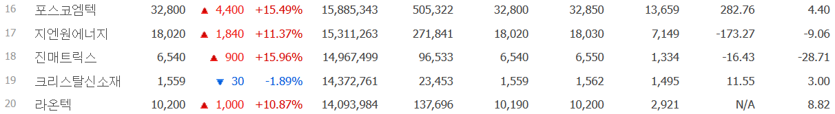 - 포스코엠텍 : #리튬관련주 상승 및 포스코 그룹주 상승.