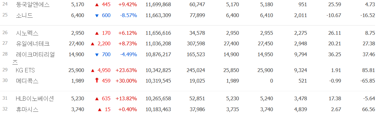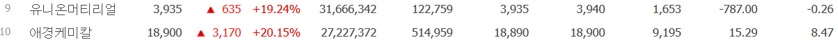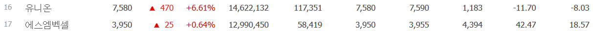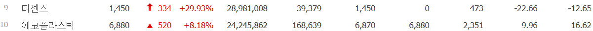 - S&K폴리텍 : 지속 하락에 의한 저가 매수세. 별다른 호재나 공시 없음.
