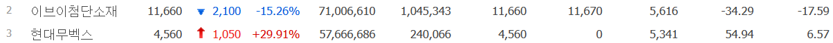 - 이브이첨단소재 : #리튬관련주 최근 연이은 상한가 이후 하락.