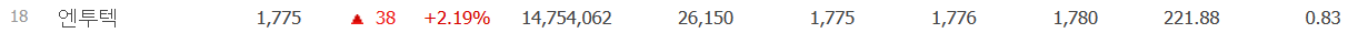 - 엔투텍 : #리튬관련주 지엔원에너지 최대주주로 금일 특별한 호재나 공시 없음.