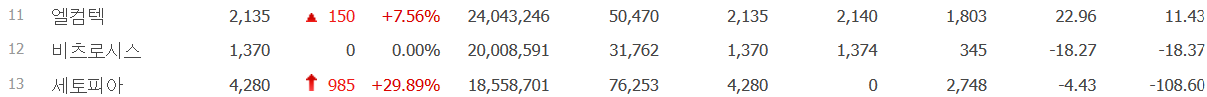 - 엘컴텍 : #금관련주 구리가격 상승 예상으로 자원개발 테마 동반 상승.
