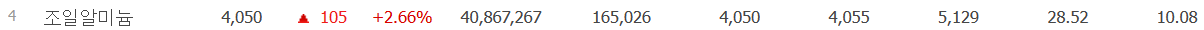 - 조일알미늄 : #2차전지관련주 양극박 제조를 위한 알루미늄 납품 업체로 테마 상승 속 상승.