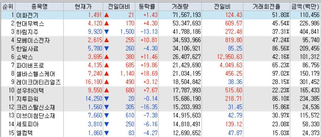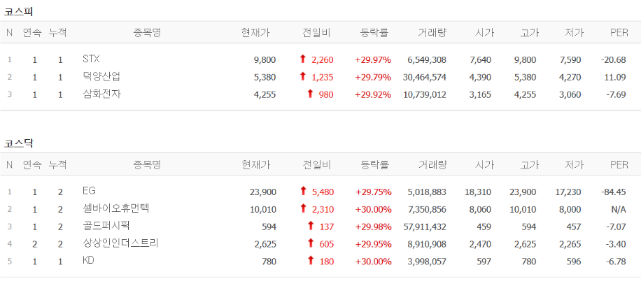 - 상상인인더스트리 : 75%비율 감자 후 거래 재개. 2연상.
