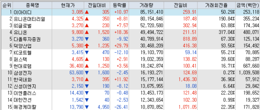 상한가나 천만주들도 이슈의 영향력이 크지 않고, 테마를 이끌어가는 힘이 약하게 느껴졌습니다.