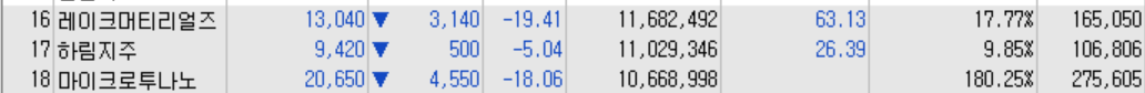 - 하림지주 : SG증권 사태 관련주. SG증권 창구 대량 매도로 지속 하락.