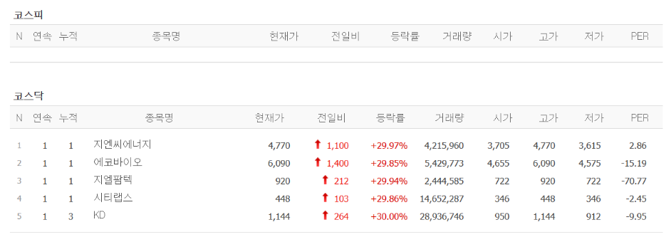 - KD : 유상증자 청약률 흥행 모멘텀 지속에 상한가. 시총 284억.