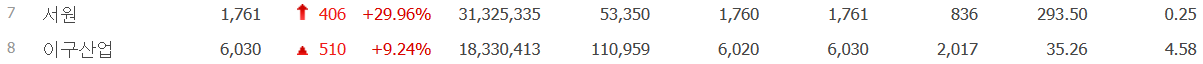 - 서원 : 황동 등의 비철금속 중간재를 재조하는 회사. 별다른 호재나 공시 없음.