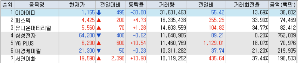 - 현대무벡스 : 별다른 호재나 공시 없음. 현대차 울산공장 2조 투자 소식에 스마트 팩토리 관련주인 동사도 주목받는건가 지켜보자.