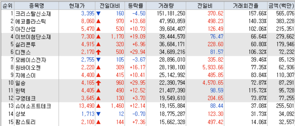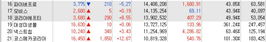 ● 코스닥 천만주 : 21종목