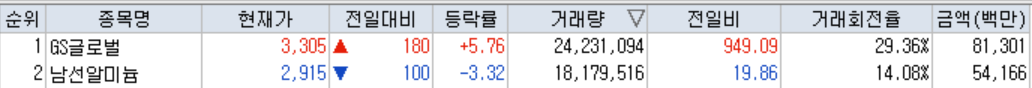 ● 코스피 천만주 : 2종목