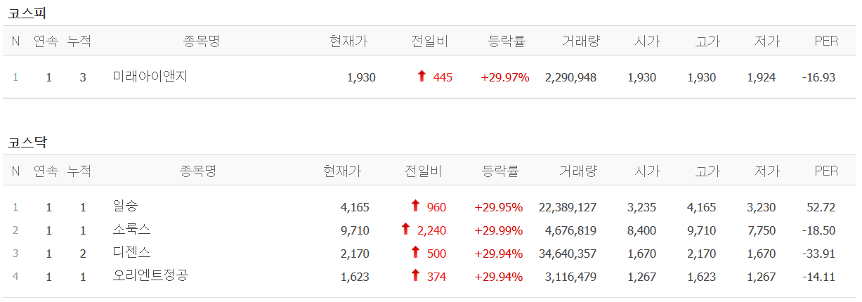 - 일승 : 상한가.