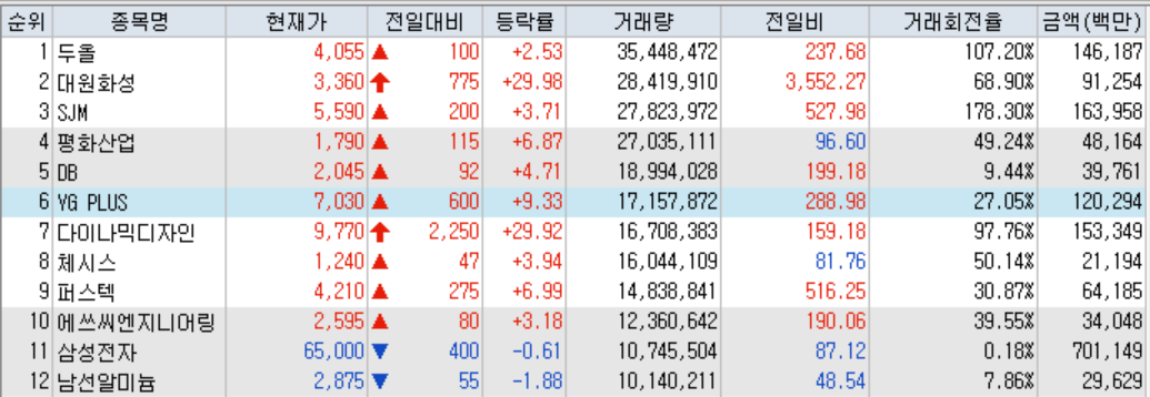 - 두올 : #자동차관련주 어제 상한가 이후 금일 자동차 부품테마 상승 속 상승.