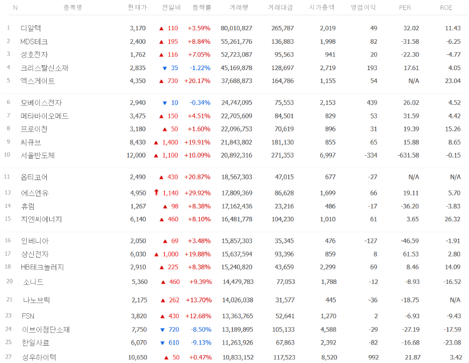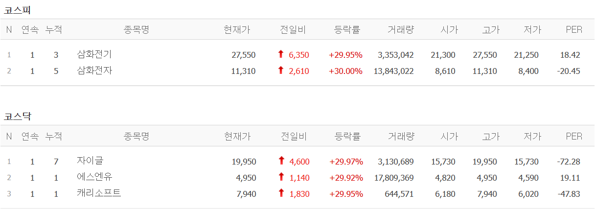 - 에스엔유 : 에스엔유가 장비를 납품하던 미국 업체 이매진(마이크로 OLED기술 보유)이 삼성디스플레이에 넘어갔다는 소식에 상한가.