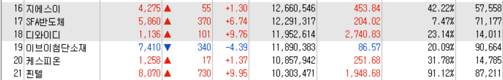 오늘도 역시나 개별주 장세가 있었고 시장의 비이성적인면을 잘 보여주는 '반도체'종목 랠리가 있었습니다.