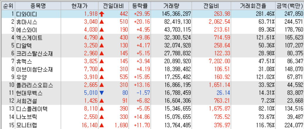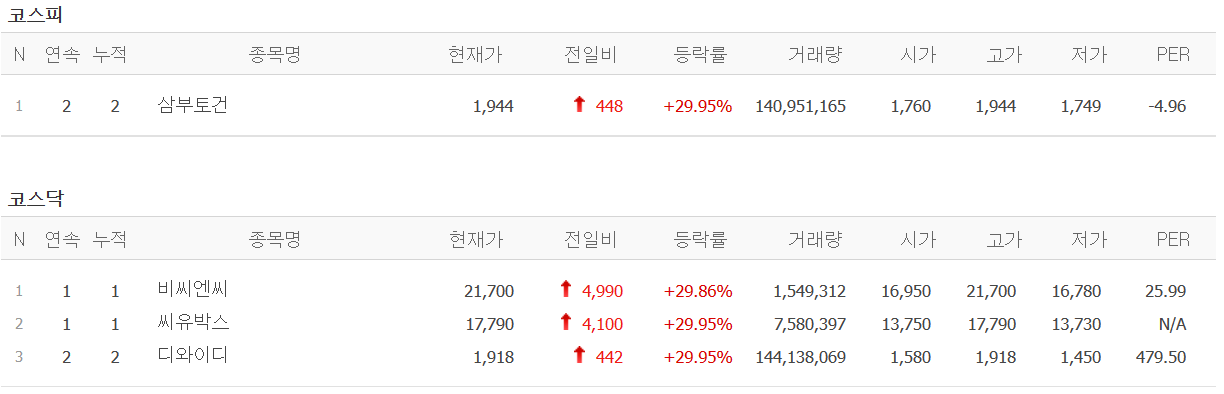 - 디와이디 : 삼부토건 모기업으로 동반 상한가.