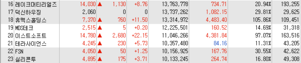 - MDS테크 : #엔비디아관련주 별다른 호재나 공시 없음.