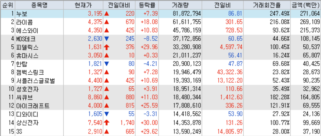 - 소룩스 : 아리바이오, 동사 경영권 인수 계약 체결 모멘텀 지속에 상한가. 아리바이오도 경구용 치매약 개발사로 삼성제약 소식에 같이 가는걸로 보임.