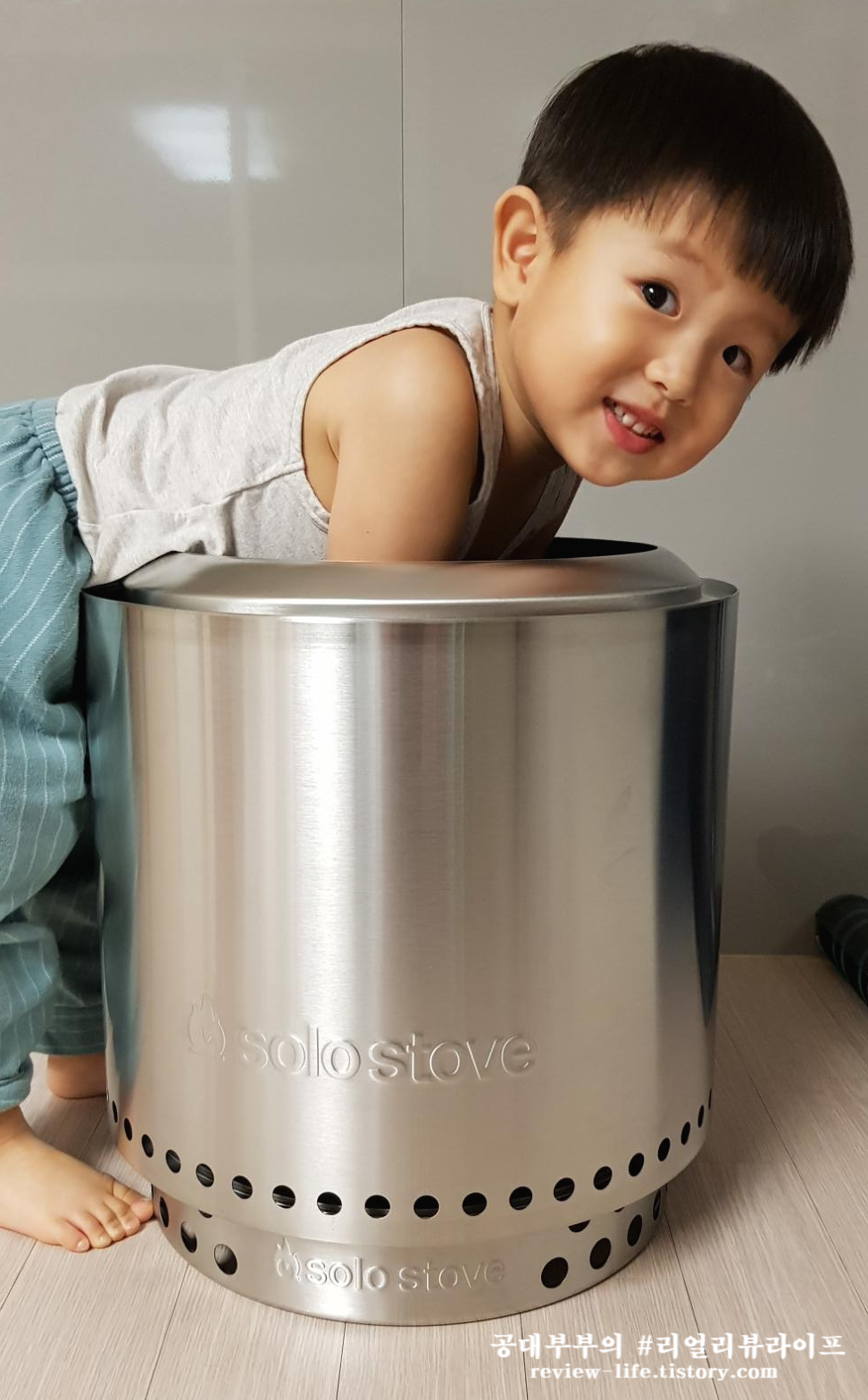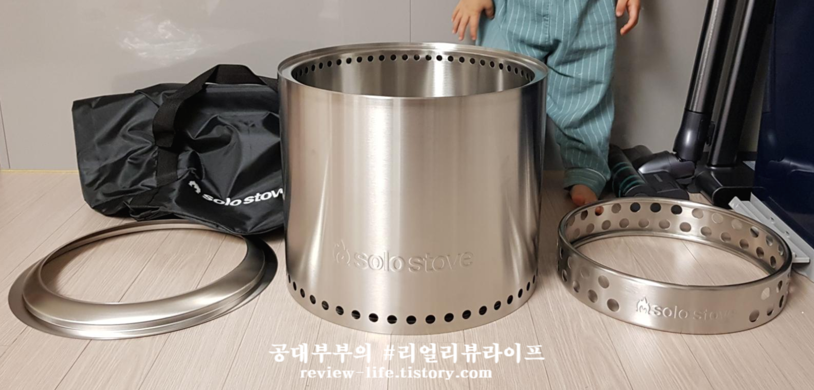 스테인리스로 이루어진 깔끔한 외관과 솔로 스토브 로고는 캠핑장에서 가장 중요한 '간지'를 뿜어냅니다.