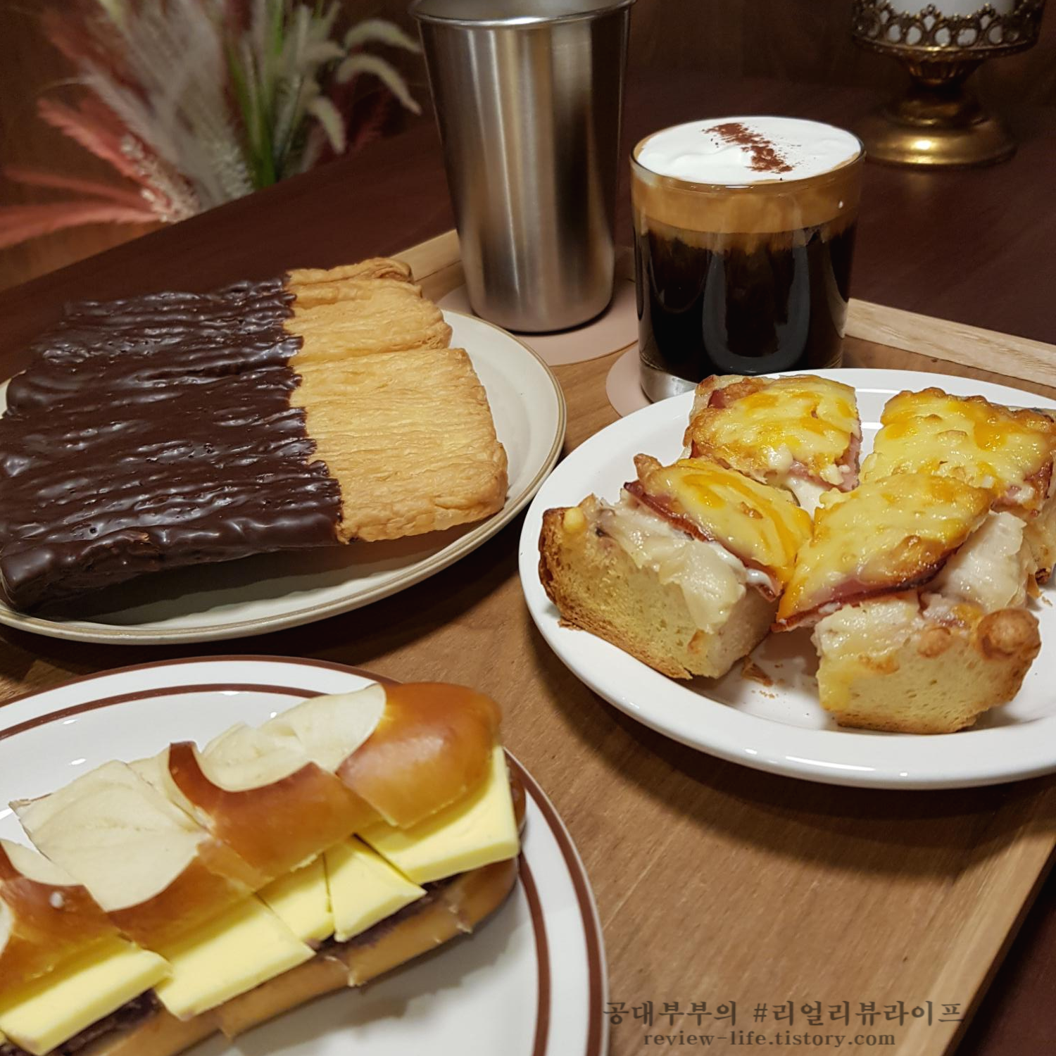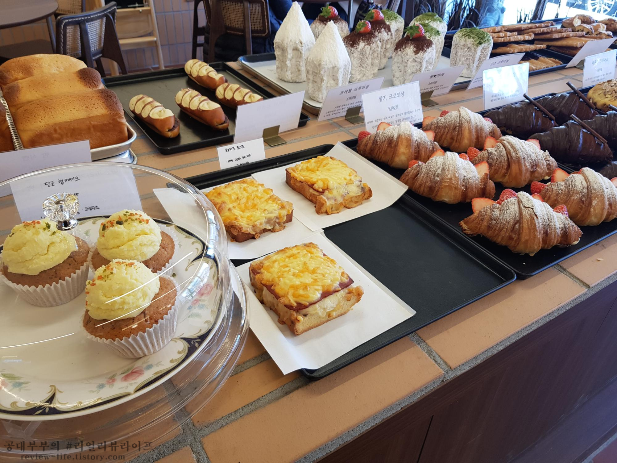여러가지 크로와상, 팡도르, 식빵, 프레첼, 컵케이크, 바게트, 햄치즈 토스트, 마카롱, 브라우니, 케이크... 헥헥