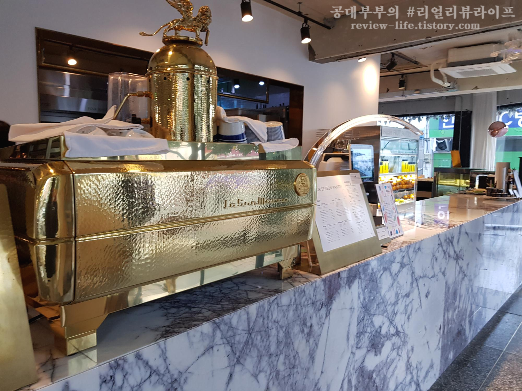 골드+벨벳+대리석 느낌으로 고급스러운 인테리어가 인상적임