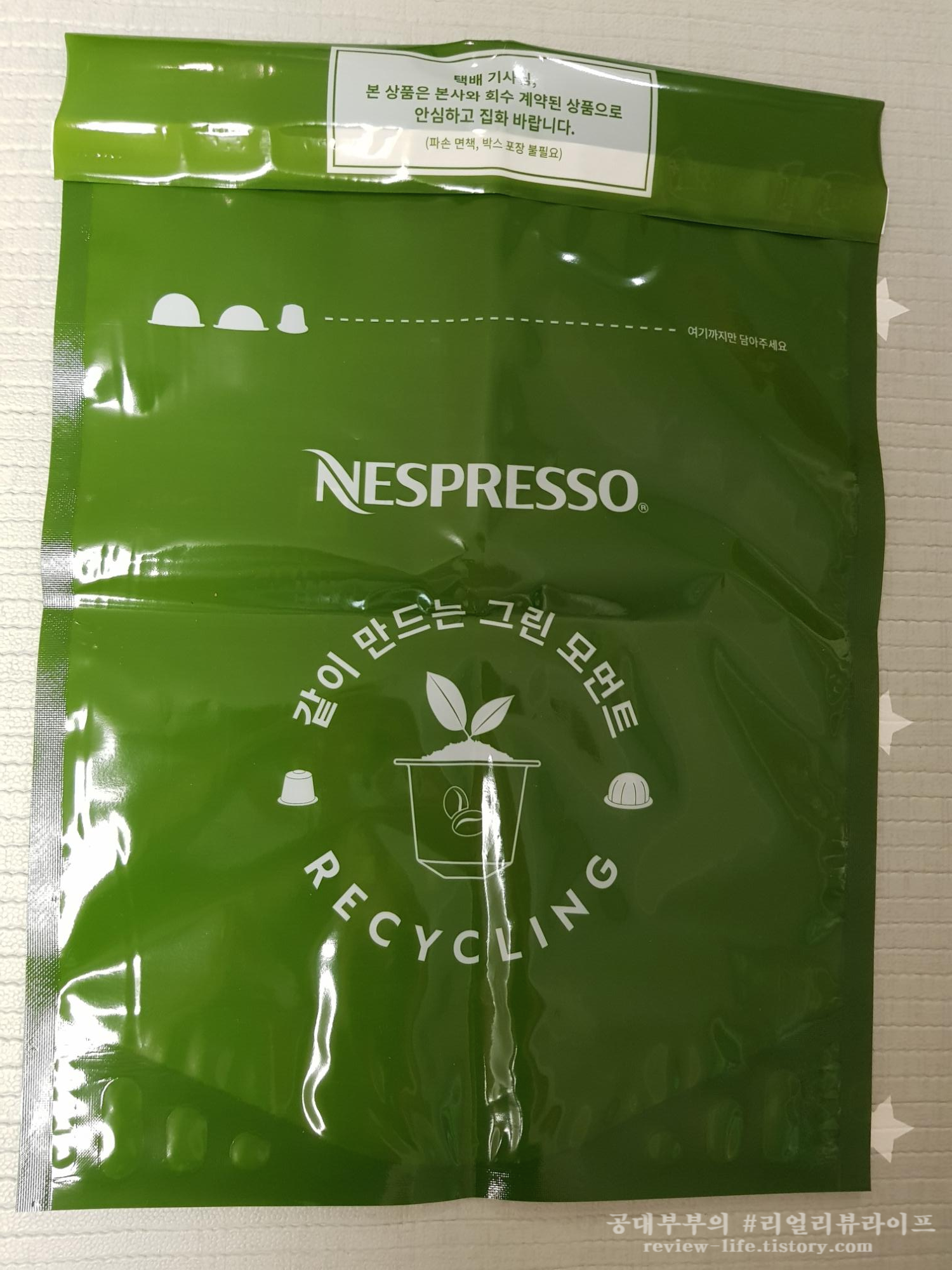 공식 홈페이지에서 캡슐을 구매할 때 같이 주문하면 받을 수 있는 수거 백
