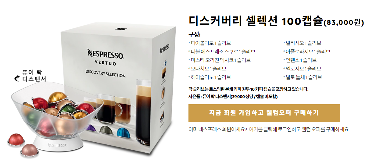 그런데 2회 구매까지는 웰컴 오퍼를 신청할 수 있으므로 일단 이번은 그냥 캡슐을 구매하고 다음번에 주문할 때는