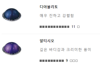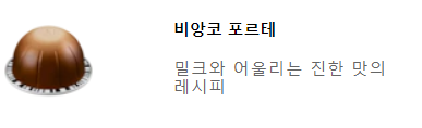밀크와 블렌딩 해서 먹기 좋은 캡슐이라고 두 가지가 있는데 하나는 연한 것이고 비앙코 포르테는 진한 맛이다