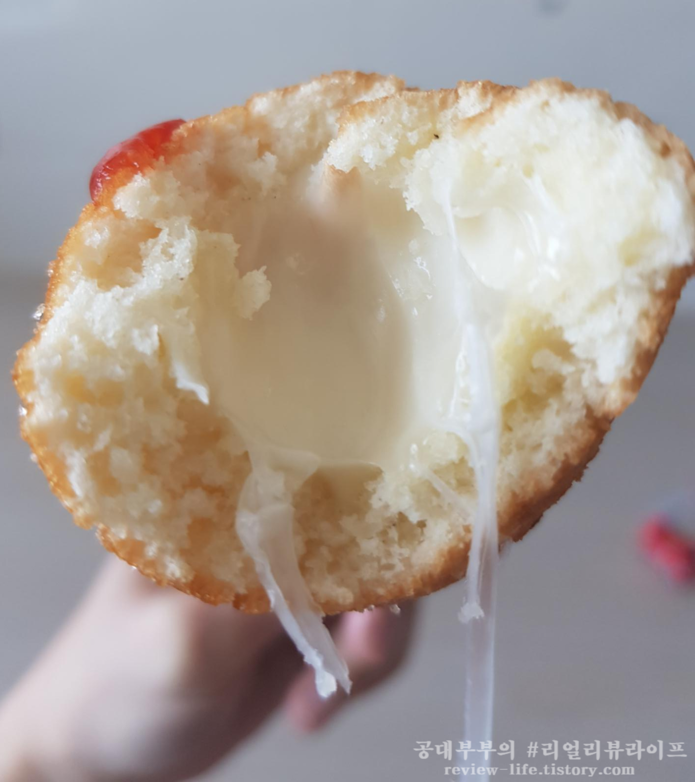 치즈랑 닭가슴살 소시지가 반씩 들어 있는데 부드러운 치즈를 먹고 나면 밑에 소시지는 퍽퍽하게 느껴진다...