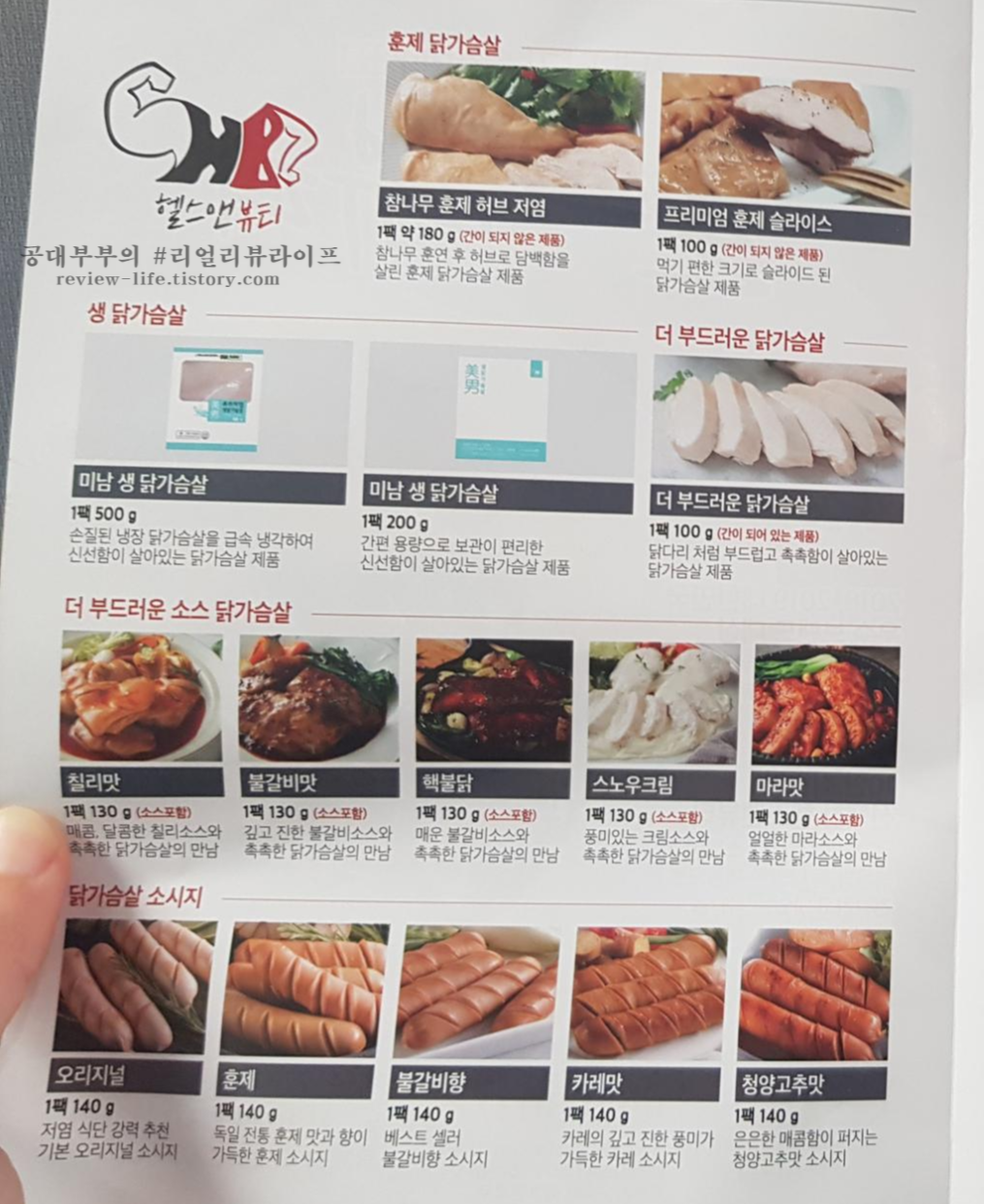 역시 닭가슴살 쇼핑몰답게 몸에 좋아 보이는 닭 가슴살 제품들과 간식 종류들이 있음